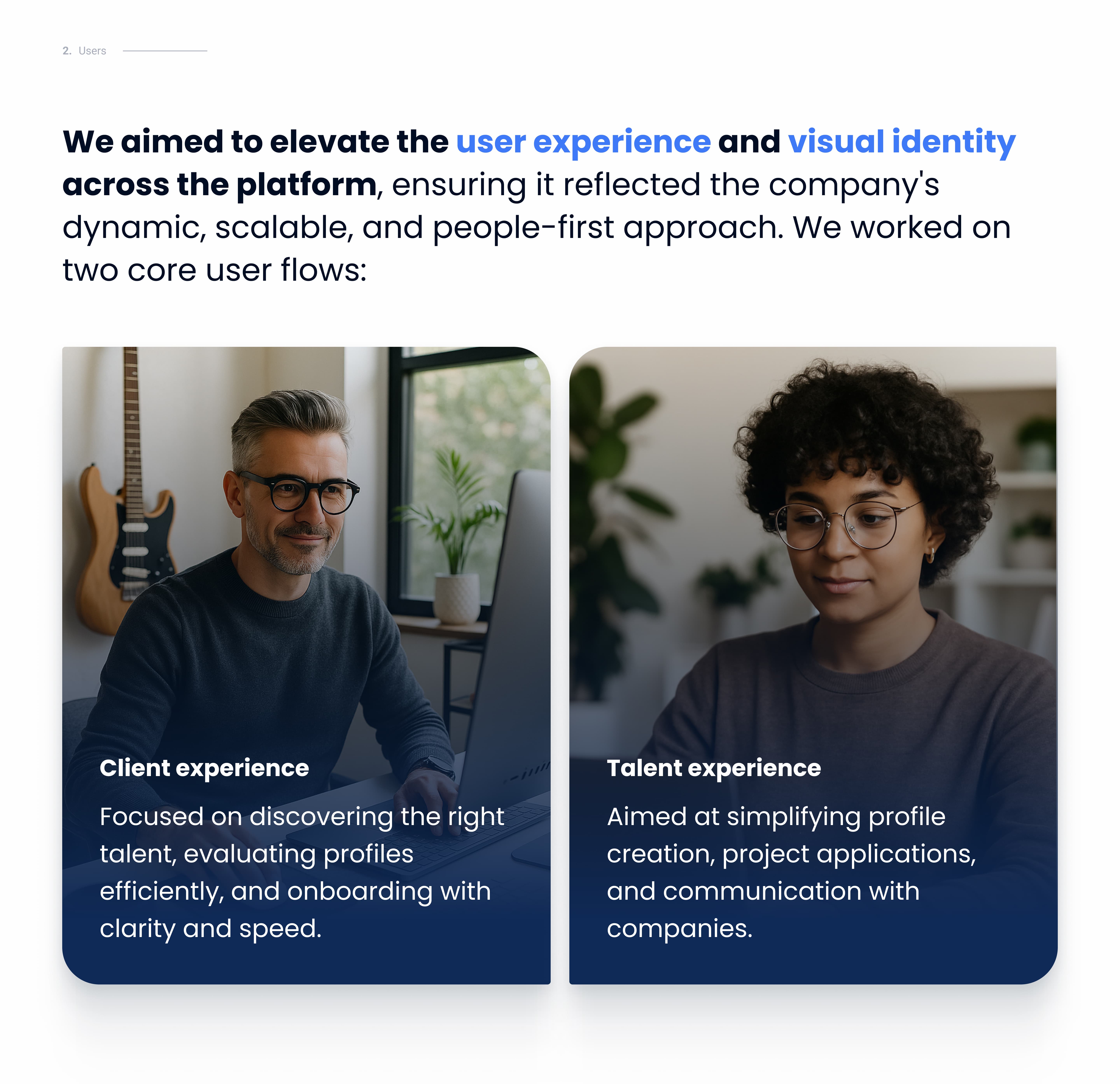 A recruitment platform redesign that connects talent and companies through a modern, user-centric experience.