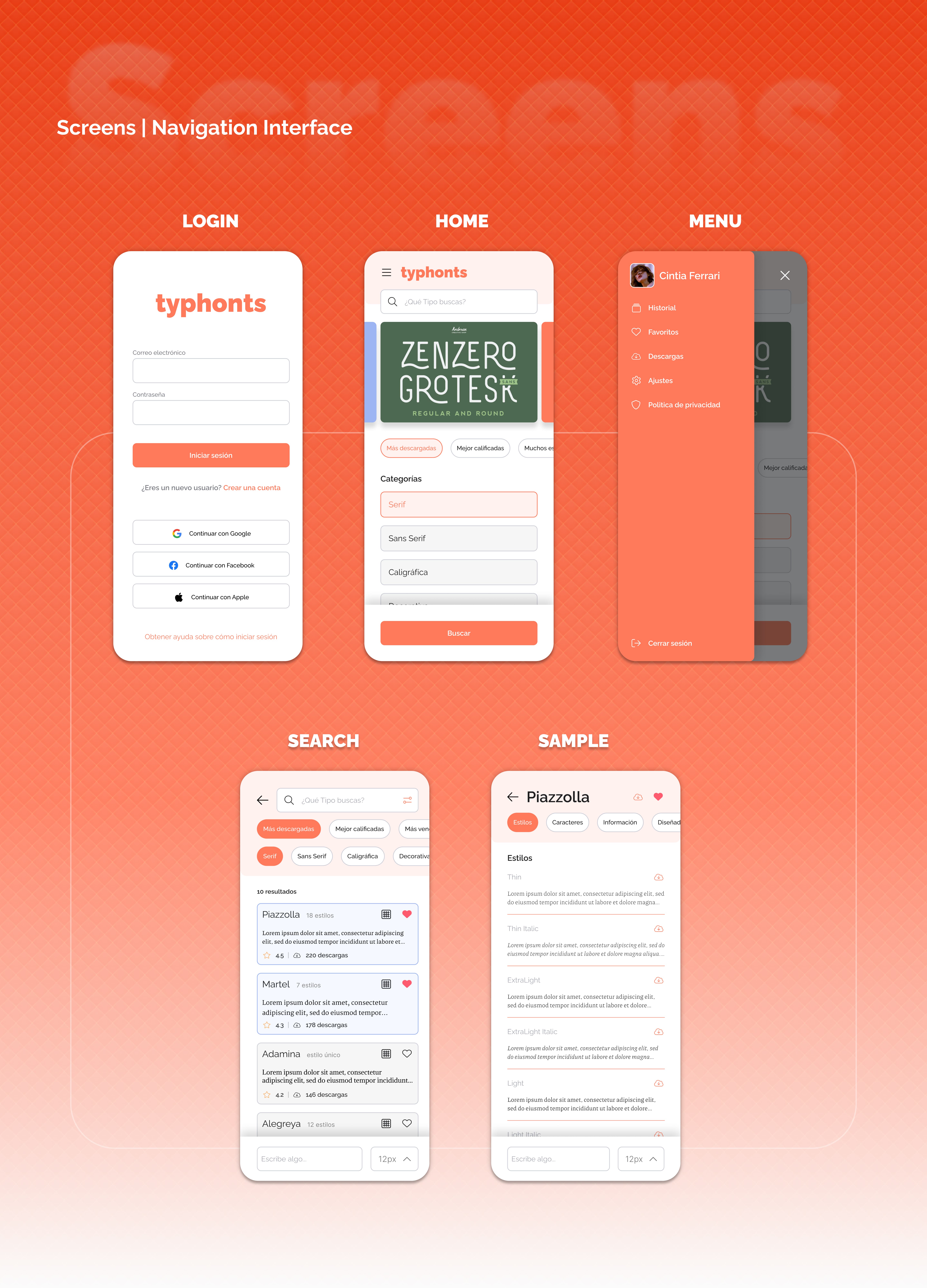 A digital catalog designed to explore, compare, and discover typefaces through a clear mobile experience.
